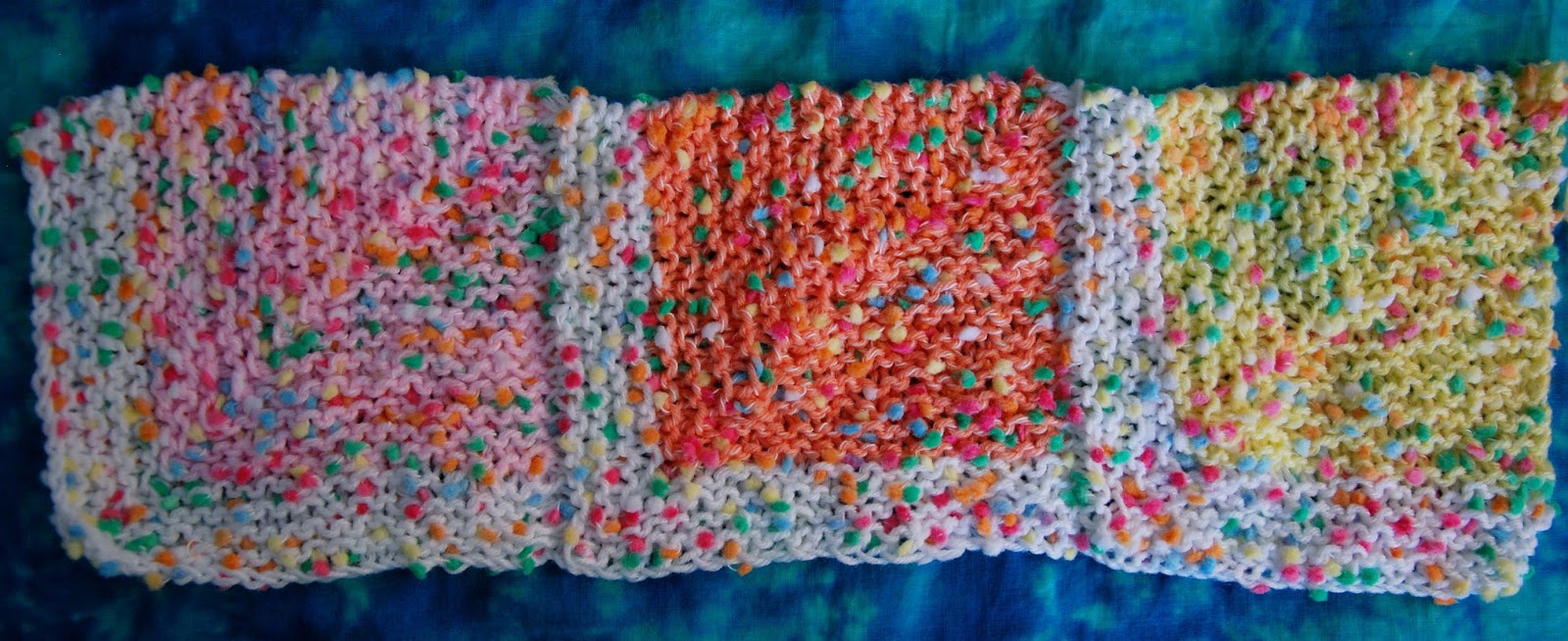 These will be donated to MCC (Mennonite Central Committee) to be included in the craft tent sale at the quilt auction in New Hamburg near the end of May. My quilt guild usually makes items for donation. I didn't feel like sewing and instead thought knitting would be a good option.